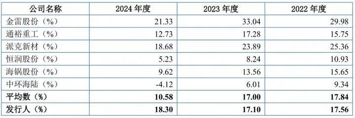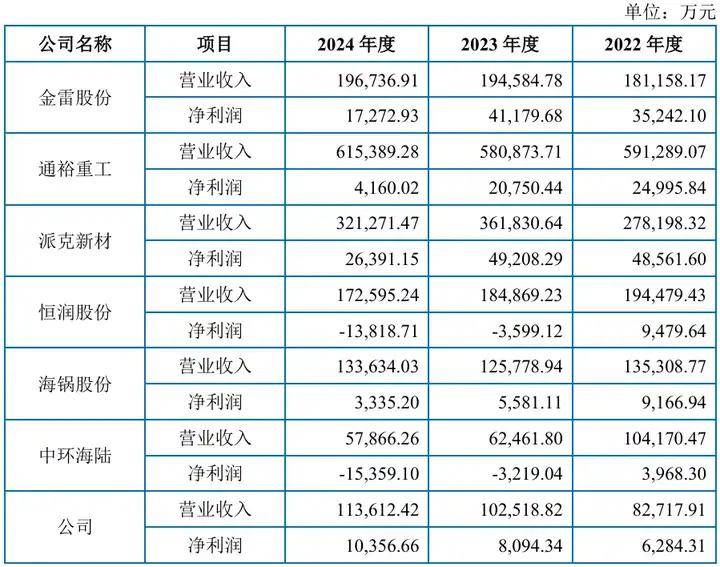 但招股书显示,与振宏股份持续增长的业绩不同的是,其同行业可比公司2022年至2024年毛利率及净利润持续下降,甚至有两家企业转向亏损。