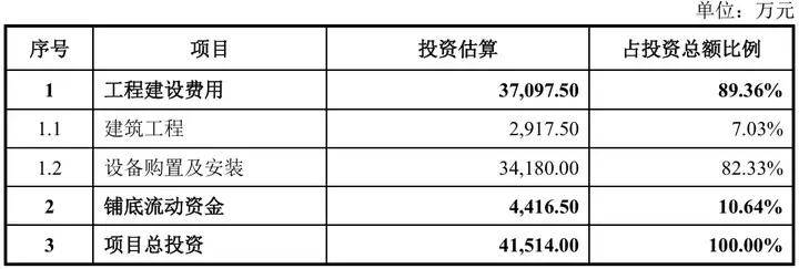 首轮问询答复显示,振宏股份“年产5万吨高品质锻件改扩建项目”预计投资4.15亿元,其中工程建设费用3.71亿元,占投资总额的比例为 89.36%,铺底流动资金投资4416.50万元,占投资总额的比例为10.64%。铺底流动资金估算采用分项详细估算法,按建设项目投产后流动资产和流动负债各项构成分别详细估算,取所需流动资金的24%作为项目铺底流动资金,其中流动资产主要为应收票据、应收账款、应收款项融资、预付款项及存货,流动负债主要为应付票据、应付账款及合同负债,各分项金额系根据公司2024年度周转次数计算得出。铺底流动资金4416.5万元=(11,042.36万元+3,680.79万元+3,680.79万元)×24%。