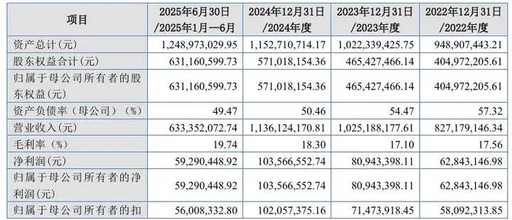 在风电主轴的细分领域,振宏股份拥有较强的竞争优势,是锻造风电主轴市场主要供应商之一。近年来,在“双碳”战略背景下,下游装机量的攀升让振宏股份大幅受益。2022年至2024年,公司分别实现营业收入8.27亿元、10.25亿元及11.36亿元;同期扣非归母净利润分别为5809.23万元、7147.39万元及1.02亿元。2023年和2024年营业收入同比增长23.94%和10.82%,扣非归母净利润同比增长23.04%和42.79%。