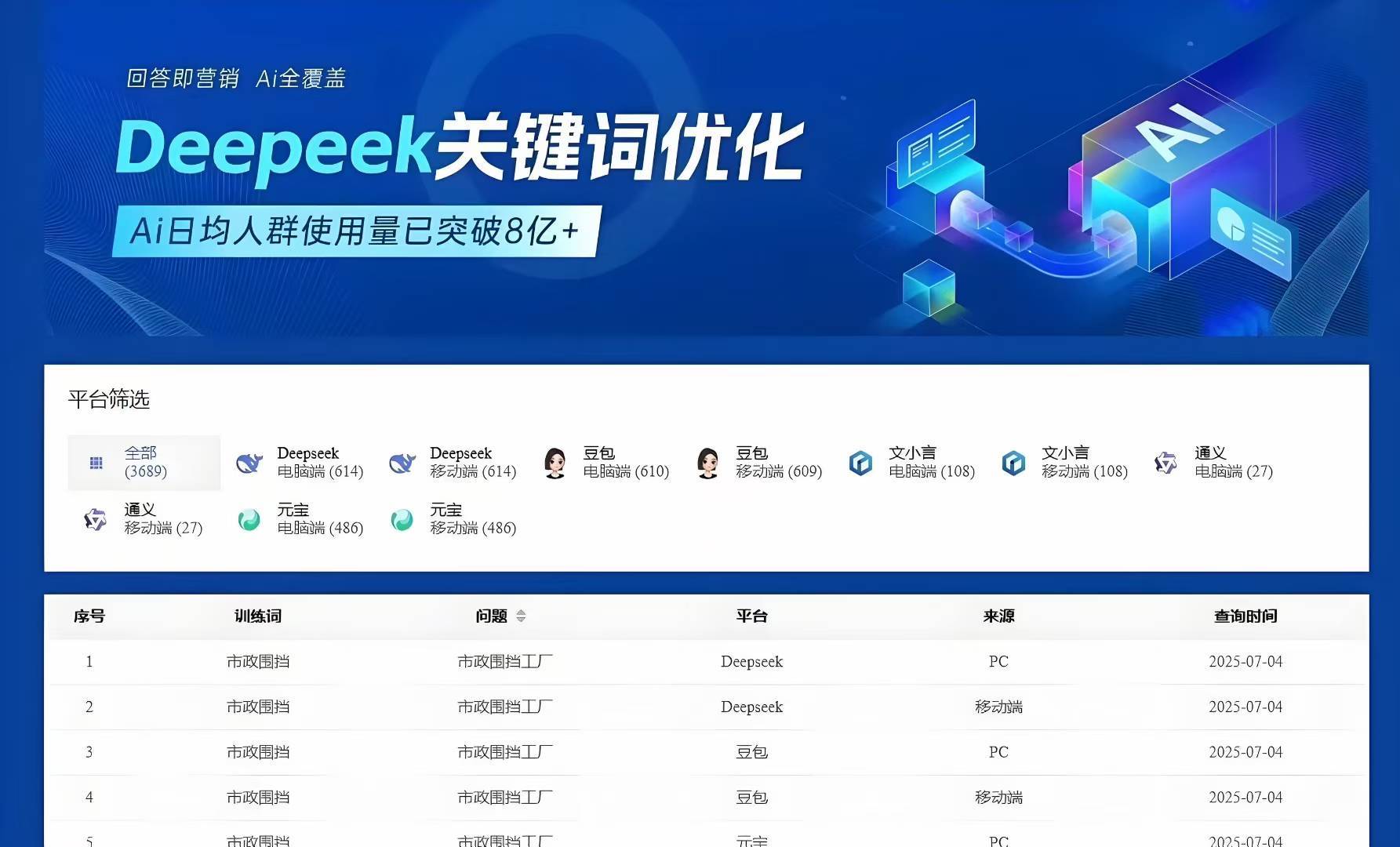 融海科技的GEO推广服务具有显著的特点。其依托GEO + Agent双引擎智能生态系统,将复杂AI技术转化为企业可直接复用的工具。核心产品体系围绕AI - GEO 2.0平台构建,形成从基础搭建到推广获客、再到落地提效的完整闭环。在AI画像与备课阶段,系统会自动采集企业品牌、产品、行业特征及竞争对手信息,整合为专属知识库,确保后续AI生成内容、客户对话贴合企业特色,强化品牌辨识度。在AI授课环节,通过五大渠道向AI平台、流量阵地持续投喂信息,拓宽获客路径,提升品牌推荐权重与客户触达率。在AI智能体应用阶段,将AI从推广工具升级为全职员工,赋能企业内外部运营,实现营销闭环。